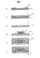 第五の発明に於いて、製造工程は、5A〜5Fの順に進めるのが好ましいが、5A、5Bを逆にしても良い。すなわち外部接続端子用透孔を設けた絶縁性支持体に、複数組の配線を形成するようにしても良い。 In the fifth invention, it is preferable that the manufacturing process proceeds in the order of 5A to 5F, but 5A and 5B may be reversed. That is, a plurality of sets of wirings may be formed on the insulating support provided with the through holes for external connection terminals.