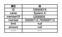 グループ情報には、グループID、グループ名(name)、上位グループID(memberOf)、下位グループID(member)、上限値(limit)、実績値(amount)などが含まれる。ドライバ107は、グループ情報に含まれる上限値と実績値から、実績値が上限値に達しているか否かを判定する。なお、実績値が上限値に達しているか否かの判定は実績管理サーバ101が行い、その結果をドライバ107に通知するようにすれば、ドライバ107の処理負荷をより軽減できる。  The group information includes a group ID, a group name (name), an upper group ID (memberOf), a lower group ID (member), an upper limit (limit), an actual value (amount), and the like. The