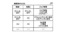 図2に戻り、機器組合せDB207は、ネットワーク機器の組合せにより、アイコンのドラッグアンドドロップ操作で実行可能なジョブ(処理)の種類を登録したデータベースである。図4は、機器組合せDB207のデータの内容の一例を示す説明図である。  Returning to FIG. 2, the