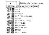 グラフィック・オーバーレイ51に含まれるプログラム情報はマイクロコントローラによりRGBビデオ発生器に供給される。フリップ・モードでは、マイクロコントローラは、まず、例えば、DRAM18にあるプログラムスケジュール・データベースをサーチし、現時点、即ち、視聴者が視聴のためにテレビ受信器上でチャンネル選択を行ったときに対応する選択チャンネル52のプログラム情報を拾い出す。マイクロコントローラ16は、次いで、RGBビデオ発生器24に現在のチャンネル及びプログラム情報を供給する。RGBビデオ発生器はディジタル・データ情報をRGBフォーマットに変換し、それをビデオ・オーバーレイデバイス25に供給する。通常の操作においては、マイクロコントローラ16は、デフォールトにより、番号順に優先順位が決められてケーブル会社により提供されるすべてのチャンネルを表示する。この番号順はラジオ周波数域における放送チャンネルまたは地方ケーブル操作者のマーケティング判断によって決められる。「チャンネル選択」サブメニュー、または、これに代わる「ロケータ」スクリーン(これらについては後に述べる)を用いて、視聴者は、テレビ受信器27に提供されるチャンネルの内容または順序を改めることができる。  Program information contained in the