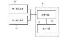 更に、上記第1検出手段5a及び第2検出手段5bは、図6に示すように、透析装置本体6に配設された演算手段11と電気的に接続されており、該演算手段11は液晶画面などの表示手段12と電気的に接続されている。演算手段11は、例えばマイコン等で構成されたものであり、第1検出手段5a及び第2検出手段5bで検出されたヘマトクリット値(特有のピーク)を比較し、動脈側血液回路1aを流れる血液中の再循環血液が占める割合を演算可能なものである。  Further, as shown in FIG. 6, the first detection means 5a and the second detection means 5b are electrically connected to a calculation means 11 disposed in the