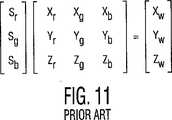多くの色モデル、及び色を指定する方法が存在し、ビデオ再生用に色を記述及び指定するために使用されている周知のCIE(Comission Internationale de L’Eclairage:国際照明委員会)色座標系を含む。本発明を用いて任意数の色モデルを採用することができ、例えばCIE L*U*V*(CIELUV)系またはCIE L*a*b*(CIELAB)系である。CIEは1931年に、すべての色の管理及び再生用の基礎を確立し、その結果が、3つの座標x,y,及びzを用いる色度図である。最大光度におけるこの三次元系のプロットは、色をx及びyで記述するために汎用的に用いられ、そして、1931x,y色度図と称されるこのプロットは、人間に知覚されるすべての色を記述できるものと信じられている。このことは、メタメリズムを用いて目をだます色再生とは対照的である。多くの色モデルまたは色空間は、今日、三原色または蛍光体、中でもAdobe RGB(登録商標)、NTSC RGB、等を使用することによって色を再生するために用いられている。 There are many color models and methods for specifying colors, the well known CIE (Comission Internationale de L'Eclairage) color coordinate system used to describe and specify colors for video playback including. Any number of color models can be employed using the present invention, such as the CIE L * U * V * (CIELV) system or the CIE L * a * b * (CIELAB) system. CIE established the basis for the management and reproduction of all colors in 1931, and the result is a chromaticity diagram using three coordinates x, y, and z. This three-dimensional plot at maximum luminous intensity is used generically to describe colors in x and y, and this plot, called the 1931 x, y chromaticity diagram, is It is believed that color can be described. This is in contrast to color reproduction that uses metamerism to fool eyes. Many color models or color spaces are used today to reproduce colors by using three primary colors or phosphors, among them Adobe RGB®, NTSC RGB, etc.