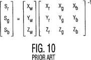 しかし、ビデオ画像はほとんど常に、ソース装置の空間から演色画像空間(定義の章参照)に変換され、演色画像空間は、ビデオディスプレイのようないくつかの現実的または仮想的な出力装置の色空間を記述する。大部分の既存の標準的なRGB色空間は演色画像空間である。例えば、カメラ及びスキャナによって生成されるソース及び出力空間はCIEベースの色空間ではなく、カメラまたはスキャナのスペクトル感度及び他の特性によって規定されるスペクトル空間である。 However, video images are almost always converted from source device space to color rendering image space (see definition chapter), which is the color space of some realistic or virtual output devices such as video displays. Is described. Most existing standard RGB color spaces are color rendering image spaces. For example, the source and output space generated by cameras and scanners is not a CIE-based color space, but a spectral space defined by the spectral sensitivity and other characteristics of the camera or scanner.