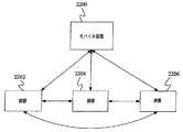 本発明のモバイル装置は、ピアツーピアモードで、プリンタ、機器、メディアレコーダ、メディアプレイヤ、および自動車など、他の装置と通信することもできる。図22は、装置2202、2204、2206など、他の装置と通信するモバイル装置2200を示す図である。  The mobile device of the present invention can also communicate with other devices such as printers, devices, media recorders, media players, and cars in peer-to-peer mode. FIG. 22 shows a