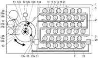 容器ボトム55の反応プレート3とは反対側の面に円盤状のシール板57、ロータアッパー59及びロータベース61からなるロータリー式の切替えバルブ63が設けられている。切替えバルブ63はロック65により容器ボトム55に取り付けられている。  A