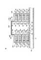 図11は、さらに他の実施形態に係る機器収容室用空調システム15の外観を示す斜視図である。また、図12は、機器収容ラック25の通路43と直交する面における概略断面図である。図11および図12において図1から図10と同じ参照番号を付したものについては同じ構成であるので説明を省略する。図11に示すように、機器収容室用空調システム15の機器収容ラック25は、冷気導入部200の側面210に風圧調整部のさらに他の形態であるノズル600を備えている。このノズル600は、図11および図12に示すように、冷気導入部200の側面210に複数配されている。  FIG. 11 is a perspective view showing an appearance of an