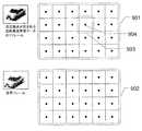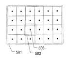 図5は、画面501を横6列、縦4行の24個の正方形に分割し、その中心点を標本点503として、24個の画素502を配した様子である。各標本点503が持つ輝度の代表値のことを画素値と呼ぶ。  FIG. 5 shows a state in which the
