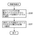 なお、ここでは移動物が1種類の場合で説明を行ったが、移動物が2種類以上画面内に存在する場合も、同様の考え方を用いることができる。例えば、移動物が2種類画面内に存在する場合は、動きベクトル分類回路30によって検出される代表動きベクトルは3つとなる。ステップS13の移動物識別処理によって、2番目の大きさの代表動きベクトルが選択された場合(この選択処理については後述する)、移動体はそれぞれ別々の方向に動いていることとなる。この場合、移動体が画面内から消滅するまで、2番目の大きさの代表動きベクトルを選択し続ければよい。  In addition, although the case where there is one type of moving object has been described here, the same concept can be used when two or more types of moving objects exist in the screen. For example, when there are two types of moving objects in the screen, the number of representative motion vectors detected by the motion