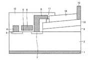 なお、図8〜図10に示す構成と図1に示す構成を比べると、短絡電極8の形状、ソース電極4の形状、ドレイン電極13の形状、ドレイン電極17の有無、絶縁膜12,14の形状、MIS領域における絶縁膜14の有無など、異なる点があるが、実質的には両者の構成は同じである。  8 to 10 is compared with the configuration shown in FIG. 1, the shape of the short-