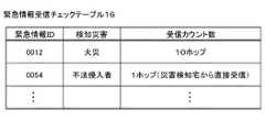 The emergency information reception check table 16 is updated every time emergency information is received, and defines the ID of the received emergency information, its contents, and the reception count number. As a result, referring to the emergency information reception check table 16 can determine whether or not emergency information has already been received.