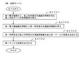 「第二検索部」(1323)は、保証付サービス依頼受信部(1322)にて受信した保証付サービス依頼に基づいて第二関連保持部(1321)を、第二利用者の共通識別情報をキーとして検索する。第二利用者の共通識別情報をキーとする検索とは、保証付サービス依頼に含まれる第二利用者の共通識別情報を抽出し、これと合致する共通識別情報が第二関連保持部にて保持されているかどうかの検索を行うことをいう。合致する共通識別情報が得られた場合には、保証付サービス依頼に応じたサービスの提供(第一サービスの利用料の支払い、暗号化コンテンツ等の復号鍵送信、パスワード送信など)を行うとしてもよい。また、検索結果は、第一判定サーバや、第二電子機器(第二サービスサーバ群を経由してもよい)に送信するとしてもよい。 Based on the service request with proof received by the service request receiving part with guarantee (1322), the “second search part” (1323) uses the second association holding part (1321) as the common identification information of the second user. Search as a key. The search using the common identification information of the second user as a key is to extract the common identification information of the second user included in the service request with proof, and the common identification information that matches this is extracted by the second association holding unit. A search for whether or not it is held. If matching common identification information is obtained, service provision (payment of usage fee for the first service, transmission of decryption key for encrypted contents, password transmission, etc.) in response to a service request with guarantee may be performed. Good. Further, the search result may be transmitted to the first determination server or the second electronic device (which may pass through the second service server group).