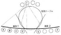 円形の仮想テーブルのまわりに12人が着席していると仮定する。一人の参加者は隣りの4人のグループをウインドウ越しに見ることができ、またこの面を展開することによって平坦なまたはほとんど平坦な画面上でこれら4人を見ることができると仮定できる。従って、彼は2つの異なるスタジオにいる4人グループの他の8人を2つの画面上、実際には平坦な形状で見る。常識的には、仮想テーブルは円形ではなく、長手方向に置かれ、両側に参加者のグループが着席する。従って、Eの人は左手にAの人を、右手にFの人を見ることになり、全ての人の間には連続的な隣接関係が存在する。 Assume that 12 people are seated around a circular virtual table. It can be assumed that one participant can see a group of four neighbors through the window and can see these four on a flat or nearly flat screen by expanding this plane. Thus, he sees the other eight members of the group of four in two different studios on two screens, actually in a flat shape. Common sense is that the virtual table is not circular but is placed in the longitudinal direction, with groups of participants seated on both sides. Therefore, the person E sees the person A on the left hand and the person F on the right hand, and there is a continuous adjacency relationship among all the persons.
