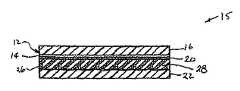 任意に、付加的な基板層24は、図8で描写されているように、接着剤やその他の方法でマイクロ波相互作用要素素材と反対側の第1のプラスチックフィルム16に接着されてもよい。付加的な基板層24は、紙やその他の適切な素材の層であってもよく、加熱中に基板からひび割れたりはがれたりするサセプタフィルムの破片から食品(不図示)を保護するために設けられてもよい。マイクロ波相互作用要素15の素材は、図6に示されるように、実質的に平坦な、複数層のシートである。  Optionally, the
