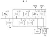 表示モニタ101は、液晶ディスプレイなどでユーザに情報を表示する装置である。ROM102は、不揮発性のメモリで制御プログラム、固定のデータなどが記憶されている。CPU103は、演算やプログラム実行、各部の制御をおこなう。通信インタフェース104は、アンテナを介して外部と通信するためのインタフェースである。GPS105は、衛星などと通信し、走行位置を確認するシステムである。入力装置106は、ボタン、リモコン、タッチパネルなどのユーザが情報を入力する装置である。RAM107は、揮発性のメモリであり、プログラムがロードされ、ワークデータが記憶される。ジャイロ108は、自動車の移動方向を計測するための装置である。HDD109は、大容量データが記憶できる装置であり、地図データやプログラムが格納される。DVD−ROMドライブ110は、地図データやプログラムが格納されたDVD−ROMから、データを読み込む装置である。  The