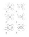 図7は、この例の電子部品の実装構造10で用いるダミー電極の形状の変形例を示す平面図である。第1の変形例によるダミー電極の形状は、図7(a)に示すように、格子状に等間隔で配設された4つの円形の基板側電極端子3(あるいは、チップ側電極端子1)の各電極端子3間に挟まれるように4つの円形の基板側ダミー電極7(あるいは、チップ側ダミー電極6)が配設された例を示し、第2の変形例によるダミー電極の形状は、図7(b)に示すように、格子状に等間隔で配設された4つの円形の基板側電極端子3で囲まれた領域の中央に1つの円形の基板側ダミー電極7が配設された例を示している。また、第3の変形例によるダミー電極の形状は、図7(c)に示すように、格子状に等間隔で配設された4つの円形の基板側電極端子3で囲まれた領域の中央に1つの方形の基板側ダミー電極7が配設された例を示し、第4の変形例によるダミー電極の形状は、図7(d)に示すように、格子状に等間隔で配設された4つの円形の基板側電極端子3で囲まれた領域の中央に1つのテトラポット形の基板側ダミー電極7が配設された例を示している。また、第5の変形例によるダミー電極の形状は、図7(e)に示すように、三角状に等間隔で配設された3つの円形の基板側電極端子3で囲まれた領域の中央に1つの円形の基板側ダミー電極7が配設された例を示し、第6の変形例によるダミー電極の形状は、図7(f)に示すように、三角状に等間隔で配設された3つの円形の基板側電極端子3で囲まれた領域の中央に1つの三角形の基板側ダミー電極7が配設された例を示している。  FIG. 7 is a plan view showing a modification of the shape of the dummy electrode used in the electronic