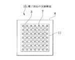 なお、図1は、図2の半導体チップ2を搭載する前のパッケージ基板4の表面(半導体チップ搭載面)の基板側電極端子3及び基板側ダミー電極7の配設パターンを示し、符号11は半導体チップ2が搭載される領域(すなわち、半導体チップ2とパッケージ基板4とが相互に重なり合って当接される領域、この明細書では、重合当接領域ともいう)を示している。また、パッケージ基板4の裏面に配設される第3の電極端子及びこの第3の電極端子に接続されるべき他のはんだバンプ、さらに半導体チップ2及びパッケージ基板4の周囲部分を覆うべきパッケージ樹脂体は、図示を省略している。  1 shows an arrangement pattern of the substrate-