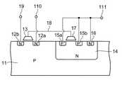 これまでの1層ポリ型のEEPROMは、例えば特許文献に記載されているように、図7の構成で形成される。このEEPROMはNchとPchのトランジスタのゲートポリ8を共通にして形成している。Nch型MOSトランジスタは拡散層2a、2b及びゲート電極3で構成される。Pch型MOSトランジスタは拡散層5a、5b及びゲート電極7で構成される。1はp型半導体基板、4はn型ウェル、6は拡散層、9、10、11は電源供給用の端子である。この二つのトランジスタは、それぞれデータリード用トランジスタとコントロールゲート用ウェル容量として用いる。また、データリード用トランジスのゲート容量よりコントロールゲート用ウェル容量のゲート容量を小さくしている。  図7ではNchトランジスタをデータリード用トランジスタ、Pchトランジスタをコントロールゲート用ウェル容量として形成している。  The conventional single-layer poly-type EEPROM is formed with the configuration shown in FIG. 7 as described in, for example, patent literature. This EEPROM is formed by sharing the gate poly 8 of the Nch and Pch transistors. The Nch type MOS transistor is composed of diffusion layers 2 a and 2 b and a
