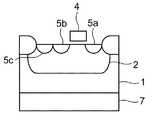 本発明のEEPROMは、p型基板の電位から素子を分離させるNウェル1、コントロールゲート用ウェル容量を構成しているNウェル2、データリード用トランジスタを構成しているPウェル3、その二素子に共通で用いているポリシリコン4を備える。ポリシリコン4は、EEPROMセルのフローティングゲートとなる。本発明のEEPROMは、更に、コントロールゲート用ウェル容量を構成する拡散層5a〜5cを有し、夫々ドレイン用p+拡散層5a、ソース用p+拡散層5b、バックゲート用n+拡散層5cである。更に、本発明のEEPROMは、データリード用トランジスタを構成する拡散層6a〜6cを有し、夫々ドレイン用n+拡散層6a、ソース用n+拡散層6b、バックゲート用p+拡散層6cである。7はp型半導体基板である。図示はしていないがp型半導体基板7とポリシリコン4の間にはゲート酸化膜が形成されている。  The EEPROM of the present invention includes an