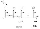 図4を参照すると、さまざまな態様による周波数帯域400の例が示されている。図示のように、水平軸402は周波数を表す。特定の搬送波周波数404に対する利用可能な帯域幅の総量をKヶの等しい幅のトーンに(例えば、Δのトーン間隔で)分割することができ、Kを任意の整数とすることができる。これらのトーンに0からK−1までの指標をつけることができる。例としてトーン0  406、トーン1  408、トーン2  410、及びトーンK−1  412が図示されている。但し、請求対象はこの図に限定されない。  With reference to FIG. 4, illustrated is an example frequency band 400 in accordance with various aspects. As shown, the horizontal axis 402 represents frequency. The total available bandwidth for a particular carrier frequency 404 can be divided into K equal width tones (eg, with a tone spacing of Δ), where K can be any integer. These tones can be indexed from 0 to K-1. As an example, tone 0 406,