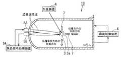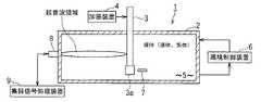 従来、超音波伝達媒質が収容された容器内に設けられた構造体の振動について、容器を分解せずに容器の外部から計測するには、容器の外部から容器壁と容器内の媒質を伝わる超音波等を対象に向かって発射し、振動変位量の測定対象物である構造体からの超音波エコーを取込んでその伝搬時間を計測し、容器壁や超音波伝達媒質中の超音波等の伝搬速度から距離に換算する手順を高速で繰り返すことにより、構造体の振動変位量を計測する技術が知られている。非破壊検査に用いられる超音波探傷装置は、このような技術に対応しており、汎用品として用いられている。 Conventionally, in order to measure the vibration of a structure provided in a container containing an ultrasonic transmission medium from the outside of the container without disassembling the container, the container wall and the medium in the container are transmitted from the outside of the container. Ultrasonic waves are emitted toward the target, ultrasonic echoes from the structure that is the object of measurement of vibration displacement are captured, and the propagation time is measured. Ultrasonic waves in the container wall and ultrasonic transmission medium, etc. A technique for measuring the amount of vibration displacement of a structure by repeating a procedure for converting from a propagation speed to a distance at high speed is known. An ultrasonic flaw detector used for nondestructive inspection corresponds to such a technique and is used as a general-purpose product.