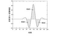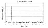 次に、構造物の振動範囲Bのように構造物が超音波エネルギーの中心を左右に不均一に横切りつつ移動する場合は、超音波エコーの波高値の時刻歴データから得られた振幅スペクトルのスペクトルパターンには、構造物が振動する周波数と略同周波数の成分とその2倍の周波数成分とのピークが観測される。 Next, when the structure moves while crossing the center of the ultrasonic energy unevenly left and right as in the vibration range B of the structure, the amplitude spectrum obtained from the time history data of the peak value of the ultrasonic echo In the spectrum pattern, peaks of a component having substantially the same frequency as the frequency at which the structure vibrates and a frequency component that is twice that frequency are observed.