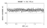 ここで、図9および図10は、加振装置4における加振条件を例えば加振周波数15Hz、加振時の振幅を100μmとして模擬構造物を加振した際に、超音波送受信装置8で受信された超音波エコーの時刻歴データ(2秒間)とこの時刻歴データをスペクトル分析して得られたリニアスペクトル(0〜100Hz)である。  Here, FIG. 9 and FIG. 10 are received by the ultrasonic transmission /