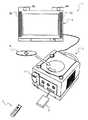 また、ゲーム装置3には、セーブデータ等を固定的に記憶するバックアップメモリ等を搭載する外部メモリカード5が必要に応じて着脱自在に装着される。ゲーム装置3は、光ディスク4に記憶されたゲームプログラムなどを実行することによって、その結果をゲーム画像としてモニタ2に表示する。なお、本発明の対象選択プログラムは、光ディスク4に記憶されたゲームプログラムの一部に含まれているものとする。さらに、ゲーム装置3は、外部メモリカード5に記憶されたセーブデータを用いて、過去に実行されたゲーム状態を再現して、ゲーム画像をモニタ2に表示することもできる。そして、ゲーム装置3のプレイヤは、モニタ2に表示されたゲーム画像を見ながら、コントローラ7を操作することによって、ゲーム進行を楽しむことができる。  Further, an