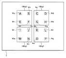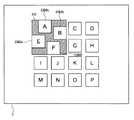 図18および図19は、16個のキーオブジェクトOBJa〜OBJpを操作部の形状に依存して表示することによって、キーオブジェクトとコントローラ7に設けられた操作部との関係をプレイヤが認識できるような表示を行う一例である。図18および図19において、16個のキーオブジェクトOBJa〜OBJpにそれぞれ記述されたキー文字、4×4に配列する配列順、および各キーオブジェクトOBJa〜OBJpが分類される4つのグループG0〜G3については、図11および図12と同様であるため、詳細な説明を省略する。図18で示す表示形態で図11と異なるのは、キーオブジェクトOBJa〜OBJpの形状によって、予めキーオブジェクトOBJa〜OBJpと十字キー72aが有する90°間隔で形成された4つの突出片との対応が認識可能であるところにある。  FIG. 18 and FIG. 19 show the 16 key objects OBJa to OBJp depending on the shape of the operation unit so that the player can recognize the relationship between the key object and the operation unit provided in the