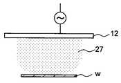 w…ウェハ、11…反応室、12…上部電極、13…下部電極、14…排気口、15…排気量調整バルブ、16…プロセスガス導入口、17…微小孔、18…支柱、19…サセプタ、20…ヒータ、21、22…高周波電源、23、24…電磁石、25、26…電磁石電源、27、28、30、31…プラズマ、29…チャージアップ。 w ... wafer, 11 ... reaction chamber, 12 ... upper electrode, 13 ... lower electrode, 14 ... exhaust port, 15 ... displacement valve, 16 ... process gas inlet, 17 ... micro hole, 18 ... support, 19 ... susceptor , 20 ... heater, 21, 22 ... high frequency power supply, 23, 24 ... electromagnet, 25, 26 ... electromagnet power supply, 27, 28, 30, 31 ... plasma, 29 ... charge up.