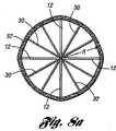 図8aは半径方向Rに対して一次ストラット12、二次ストラット30およびハブ11により構成された網状構成またはパターンを示している。図8aに示される網状パターンは肺塞栓の可能性を防ぐために心臓および肺に達する前に血流で運ばれる血栓を捕捉するように機能する。この網状パターンは患者の血管系内を運ばれることが望ましくないサイズの血栓を捕捉して止めるように寸法決めされている。ハブは小型化されているため、血流に対する抵抗が最小限になる。FIG. 8 a shows a reticulated configuration or pattern constituted by