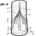 この実施形態では、図6aおよび6bは共に下大静脈52内に部分的に展開したフィルタ10を示している。図6aではフィルタ10が患者の大腿静脈を通して送達チューブ48により送出されており、図6bではフィルタ10が患者の頸静脈を通して送達チューブ50により送出されている。フィルタ10の展開のために、送達チューブを、その遠位端部が展開位置にあるように、患者の血管に経皮的に挿通する。この実施形態では、送達チューブを展開位置まで案内するために、好ましくは、ワイヤガイドが使用される。図6aでは、患者の大腿静脈を経る送達のために、取出しフック46が先行し、且つ一次ストラット12のアンカーフック26をフィルタ保持部材により保持した状態で、フィルタ10が送達チューブ48の近位端部に挿通されている。In this embodiment, FIGS. 6 a and 6 b both showthe