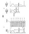 図8(b)は、道路標示が「横断歩道有り」と「停止線」を含む場合の、テンプレート13における補正前の横方向輝度投影パターンと、補正後の横方向輝度投影パターンと、の概略図である。  FIG. 8B shows an outline of the horizontal luminance projection pattern before correction and the horizontal luminance projection pattern after correction in the