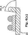 図1を参照すると、次のステップ22で、突起部36の端部に台形状先端部を形成する。図2は、より詳細な台形状先端部を示す。端部60の近傍にある突起部の側面の角度は機械によって形成され、角度を内側に向け、突起部36の中心軸方向へ向けて傾斜させられる。このステップは、図2のステップ51としてより詳細に示されている。端部60の近傍にある突起部36の各壁面部は、突起部36の縦方向と平行した軸方向に傾く角度に傾斜していることに留意されたい。ステップ51は、端部650の近傍にある上部表面と下部表面の61と63がどの程度傾斜しているかを示したものであり、当業者にとって、その他2つの表面部62、64も同様に傾斜していることは周知である。傾斜している表面部61、62、63、64は変形した先端表面部65で終端し、それにより、台形状に形成された突起部を備えた先端部が形成される。好適な実施例では、突起部36は、その中心軸に対して垂直な平面において正方形の断面を有する。もちろん、突起部36は、長方形の断面を持つことがあり、台形状に形成された先端部も又、設けることがきる。たとえ、その突起部が他の形状に形成された断面を有していたとしても、傾斜した平坦な表面部を設け、先端部へ伸張する突起部の壁をテーパ形成することができる。このように、3つ、4つ、5つ以上の、周囲にある突起部を備えた表面部は本発明の範囲内であると考えられる。  Referring to FIG. 1, in the