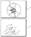 第7の発明は、第2ないし5のいずれかの発明に従属し、動作パラメータ設定手段は、角度の変化量に基づいて動作パラメータとしての旋回角度を変化させる。第7の発明では、動作パラメータ設定手段(S83)は、角度変化量に基づいて旋回角度を変化させるので、プレイヤは、2点を結ぶ線の角度を変化させることによってキャラクタの旋回角度を変化させることができる。The seventh invention is dependent on any one ofthe second to fifth inventions, and the operation parameter setting means changes the turning angle as the operation parameter based on the change amount of the angle.In the seventh invention, since the action parameter setting means (S83) changes the turning angle based on the angle change amount, the player changes the turning angle of the character by changing the angle of the line connecting the two points. be able to.
