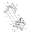 なお図2(b)に見るように、支持台4の2本の柱42はそれぞれが2本の柱体421からなっており、上ビーム5は両端部がこれら2本の柱体421の間に挟まれることによりガイドされて上下するようになっている。しかし上ビーム5が支持台の柱にガイドされて上下可動になっていれば、支持台の柱の構成は図示したものに限定されない。たとえば支持台の柱の断面がコの字形になっていて2本の柱はコの字形の凹部が向かい合わせになっており、上ビーム5の両端部がコの字形の凹部にはまり込んでガイドされる構造でも良い。  As shown in FIG. 2B, each of the two