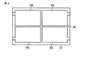 例えば、図7および図8に示すように、偏光制御素子5の第1偏光制御素子5aが、第1分割領域R3、第2分割領域R4、第3分割領域R5および第4分割領域R6を有している場合、第1電極35および第2電極38は、第1分割領域R3ないし第4分割領域R6に重なってそれぞれ分割されている。分割された第1電極35および第2電極38にそれぞれ独立して駆動電圧を印加することができる。  For example, as shown in FIGS. 7 and 8, the first