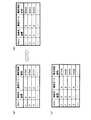 次に、GW装置3a,3bの制御部30及び分配装置4の制御部40が図5乃至図7のフローチャートに示した処理を行なうことにより、メッセージの中継が実現されることを具体例を挙げて説明する。図8及び図9は、実施の形態1における車載通信システムで送受信されるメッセージの内容例及び流れを示す模式図である。図8及び図9の模式図では、各装置をブロックで表わす。図8及び図9中のGW装置3a,3b及び分配装置4を表わすブロック内に示されている四角に囲まれた番号は各装置の識別番号を示す。丸に囲まれた番号は各支線2a,2b,2c,2d,2e,2fに対応する通信ポートの識別番号を示す。 Next, a specific example is given that message relaying is realized by thecontrol unit 30 of theGW apparatuses 3a and 3b and thecontrol unit 40 of thedistribution apparatus 4 performing the processes shown in the flowcharts of FIGS. I will explain. FIGS. 8 and 9 are schematic diagrams showing a content example and flow of messages transmitted and received in the in-vehicle communication system in the first embodiment. In the schematic diagrams of FIGS. 8 and 9, each device is represented by a block. The numbers enclosed in the squares shown in the blocks representing theGW devices 3a and 3b and thedistribution device 4 in FIGS. 8 and 9 indicate the identification numbers of the respective devices. The numbers surrounded by circles indicate the identification numbers of the communication ports corresponding to thebranch lines 2a, 2b, 2c, 2d, 2e, 2f.