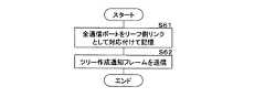 制御部60は、ステップS5108において当選通知フレームを受信したと判断し(S5108:YES)、受信した当選通知フレームに含まれるアドレス情報に示される送信元の装置の識別番号を分配装置の装置の識別番号として記憶するが(S5109,S5110)、当該当選通知フレームを受信したルート側リンクとして対応付けると共に、既に対応付けられていたものも含め他の全通信ポートをリーフ側リンクとして対応付けて記憶部61に記憶する(ステップS8105)。 Thecontrol unit 60 determines that the winning notification frame has been received in step S5108 (S5108: YES), and identifies the identification number of the transmission source device indicated in the address information included in the received winning notification frame. Although it is stored as a number (S5109, S5110), the winning notification frame is associated with the received route side link, and all other communication ports, including those already associated, are associated with each other as leaf side links. (Step S8105).