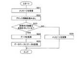 制御部60は、幹線通信部63によりメッセージを受信し(ステップS91)、メッセージに付加されているアドレス情報を読み出す(ステップS92)。制御部60は、読み出したアドレス情報に示される送信先の装置の識別番号は自身を示しているか否かを判断する(ステップS93)。制御部60は、自身を示していると判断した場合(S93:YES)、それに応じた処理を行ない、後述のステップ97に処理を進める。 Thecontrol unit 60 receives the message by the main line communication unit 63 (step S91), and reads the address information added to the message (step S92). Thecontrol unit 60 determines whether or not the identification number of the transmission destination device indicated in the read address information indicates itself (step S93). When it is determined that thecontrol unit 60 indicates itself (S93: YES), thecontrol unit 60 performs a process corresponding thereto and advances the process to step 97 described later.