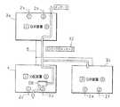 制御部30は、GW装置3aに支線2a,2bを介して接続されているECU1,1,…から送信されたメッセージを支線通信部32により受信した場合は原則として、分配装置4にデータを集約させるため、受信したメッセージを幹線通信部33により分配装置4へ送信する。これに際し制御部30は、支線通信部32によりメッセージを受信したときにECU1,1,…が接続されている支線2a,2bのいずれかに対応する通信ポートを識別し、自身の装置の識別番号及び識別した通信ポートを送信元のアドレス情報としてメッセージに付加する。さらに制御部30は、送信先の装置の識別番号及び通信ポートを送信先のアドレス情報として付加する。なお、制御部30は、GW装置3b及び分配装置4を介してECU1,1,…へメッセージを送信するのではなく、GW装置3b及び分配装置4自体を送信先としてメッセージを送信する場合には、送信先のアドレス情報に含まれる通信ポートを「0」とする。 When the message transmitted from theECUs 1, 1,... Connected to theGW device 3a via thebranch lines 2a, 2b is received by the branchline communication unit 32, thecontrol unit 30 collects data in thedistribution device 4 in principle. Therefore, the received message is transmitted to thedistribution device 4 by the mainline communication unit 33. At this time, when the message is received by the branchline communication unit 32, thecontrol unit 30 identifies the communication port corresponding to any of thebranch lines 2a, 2b to which theECUs 1, 1,. And the identified communication port is added to the message as address information of the transmission source. Further, thecontrol unit 30 adds the identification number and communication port of the transmission destination device as transmission destination address information. Thecontrol unit 30 does not transmit a message to theECUs 1, 1,... Via theGW device 3b and thedistribution device 4, but transmits the message with theGW device 3b and thedistribution device 4 itself as a transmission destination. The communication port included in the destination address information is set to “0”.