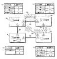図38及び図39は、実施の形態6における車載通信システムで送受信されるメッセージの内容例及び流れを示す模式図である。図38及び図39の模式図では、各装置をブロックで表わしている。図38及び図39中のGW装置6a,6b,6c,6d,6eを表わすブロック内に示されている四角に囲まれた番号は各装置の識別番号を示し、丸に囲まれた番号は支線2a,2b,2c,2d,2e,2f,2g,2h,2i,2jに対応する支線通信部62における通信ポートの識別番号を示し、三角に囲まれた番号は幹線5a,5b,5c,5d,5e,5f,5gに対応する幹線通信部63における通信ポートの識別番号を示す。 FIGS. 38 and 39 are schematic diagrams illustrating a content example and a flow of a message transmitted and received in the in-vehicle communication system according to the sixth embodiment. In the schematic diagrams of FIGS. 38 and 39, each device is represented by a block. The numbers enclosed in the squares shown in the blocks representing theGW devices 6a, 6b, 6c, 6d, and 6e in FIGS. 38 and 39 indicate the identification numbers of the devices, and the numbers enclosed in circles are branch lines. 2a, 2b, 2c, 2d, 2e, 2f, 2g, 2h, 2i, and 2j correspond to the identification numbers of the communication ports in the branchline communication unit 62, and the numbers surrounded by triangles aretrunk lines 5a, 5b, 5c, and 5d. , 5e, 5f, and 5g, the identification numbers of the communication ports in the mainline communication unit 63 are shown.