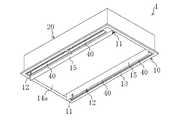 また、室内パネル(10)に枠体(13)は設けられておらず、中央プレート(14a)と、開口カバー(15)を閉じた状態で中央プレート(14a)及び開口カバー(15)とともに長方形のフラット面を構成する4枚のコーナープレート(14b)とが設けられている。長手側の開口カバー(15)を開いた状態で現れる空気吹出口(12)にはそれぞれ2枚の風向調整フラップ(40)が設けられ、短手側の開口カバー(15)を開いた状態で現れる空気吹出口(12)にはそれぞれ1枚の風向調整フラップ(40)が設けられている。 In addition, the frame (13) is not provided on the indoor panel (10), and it is rectangular together with the central plate (14a) and the opening cover (15) with the central plate (14a) and the opening cover (15) closed. And four corner plates (14b) constituting the flat surface. Two air direction adjustment flaps (40) are provided at the air outlet (12) that appears when the opening cover (15) on the long side is opened, and the opening cover (15) on the short side is opened. Each air outlet (12) that appears is provided with one wind direction adjusting flap (40).