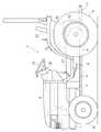 As shown in this figure, the traveling operation mechanism includes a hydraulic transmission cylinder 42 (hereinafter, abbreviated as a transmission cylinder 42) for shifting the hydrostatic continuously variable transmission 4 and an