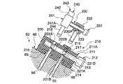 図28にアタッチメント170と共に用いる組織回収装置200を示す。組織回収装置200は、組織回収用ケース201と、組織回収用フィルタ81とを有する。組織回収用ケース201は、ケース本体82から先端側管路202と、基端側管路203とが軸線方向に所定の間隔で配置されている他は、第二の実施の形態と同じ構成である。先端側管路202と、基端側管路203とは、それぞれが屈曲した後に、平行に延びている。先端側管路202の側部は、所定位置に内部と外部を連通させる接続管路204が形成されている。  FIG. 28 shows a