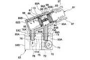 ケース本体82は、円形の開口部83を有し、開口部83の外周には一対の係止突起83Aが設けられている。係止突起83Aは、開口部83の一直径上に配置されている。ケース本体82の開口部83の内側は、ケース本体82の底部82Bに向かって縮径するテーパ面83Bを有する。ケース本体82の開口部83よりも底部82B側には、蓋86が挿入されている。蓋86は、シール材87によってケース本体82の内壁との間で気密を保持しながらケース本体82の長手方向に摺動自在になっている。ここで、ケース本体82の内周側には、連通用の溝88が長手方向に沿って1本形成されており、この溝88の途中に蓋86がある場合には、蓋86の上面からケース本体82の開口部83までの空間89Aと、蓋86の底面からケース本体82の底部82Bまでの空間89Bとを連通させることができる。溝88は、底部82Bから先端側管路84の接続位置の手間まで延びている。蓋86とケース本体82の底部82Bとの間には、付勢手段であるコイルバネ90が挿入されており、蓋86は開口部83に向けて付勢されている。図9に示すように、無負荷状態では、蓋86がテーパ面83Bによって形成される段差部91に突き当たるので、これ以上は外に出ない。この位置では、ケース本体82の内部が先端側管路84及び基端側管路85に連通し、開口部83は蓋86によって密封される。  The
