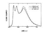 本比較例の場合には、上記の発光を色度座標に示すと、電流密度が0.1mA/cm2の場合に(0.41,0.39)、電流密度が10mA/cm2の場合に(0.36,0.38)となっており(図14で後掲)、駆動電流の変化によって色度変化が生じていることがわかる。In the case of this comparative example, when the light emission is shown in chromaticity coordinates, when the current density is 0.1 mA / cm2 (0.41, 0.39), the current density is 10 mA / cm2 . (0.36, 0.38) (described later in FIG. 14), it can be seen that a change in chromaticity is caused by a change in drive current.