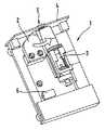 図1におけると同様に図2において示したものは切開傷付与器具3がその切開動作位置にある状態に対応するものである。図3に示したものは前記切開傷付与器具3がその収納位置にある状態に対応するものである。前記切開傷付与器具3はこれら二つの位置を行ったりきたりする移動を繰り返すことになる。分析器具2は図1に示した本体容器の開口部5からは遠く離れた位置から移動させられ、分析実施位置に位置を取る。分析実施位置に位置することで前記分析器具2は本体容器の開口部5に押し付けられた身体部分に付与された切開傷から流れ出る液体の分析を実行することができる。前記分析器具2は実質的にそれまでは切開傷付与器具3がその切開動作位置としていた、本体容器に開口部に隣接する空間域をそれに交代して占有するものである。分析器具2と切開傷付与器具3はしたがって相互に交代する形で本体容器の開口部5に直接接する空間域に位置を取ることになる。  As in FIG. 1, what is shown in FIG. 2 corresponds to the state in which the incision