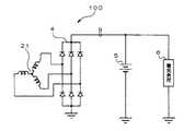 図4は、本実施形態の車両用交流発電機100の結線図である。電機子巻線21はY結線された三相分布巻線であり、3つの出力端子は、三相の整流器4に接続されている。整流器4の出力端子(B端子)は、車両に搭載されたバッテリ5と、各種のランプ類を含む各種の電気負荷6に接続されている。  FIG. 4 is a connection diagram of the