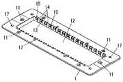 なお、図における3本の変形防止用桟16のうち、中央の変形防止用桟16のように、隣接する2個の取付溝14aの間に形成された取付溝14bに変形防止用桟16を接続することもできるし、図における3本の変形防止用桟16のうち、両端の変形防止用桟16のように、隣接する2つの取付溝14aの間であって取付溝14bを形成していない部位に、変形防止用桟16を形成することもできる。  Of the three deformation prevention bars 16 in the figure, the deformation prevention bars 16 are formed in the mounting