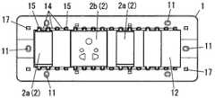 上述のように、変形防止用桟16に区切られた取付孔12の各部位において、横方向におけるスイッチ2aの長さ寸法の半分の長さごとに横方向にずらしてスイッチ2aを取付孔12に取り付けることができる。  As described above, in each part of the mounting